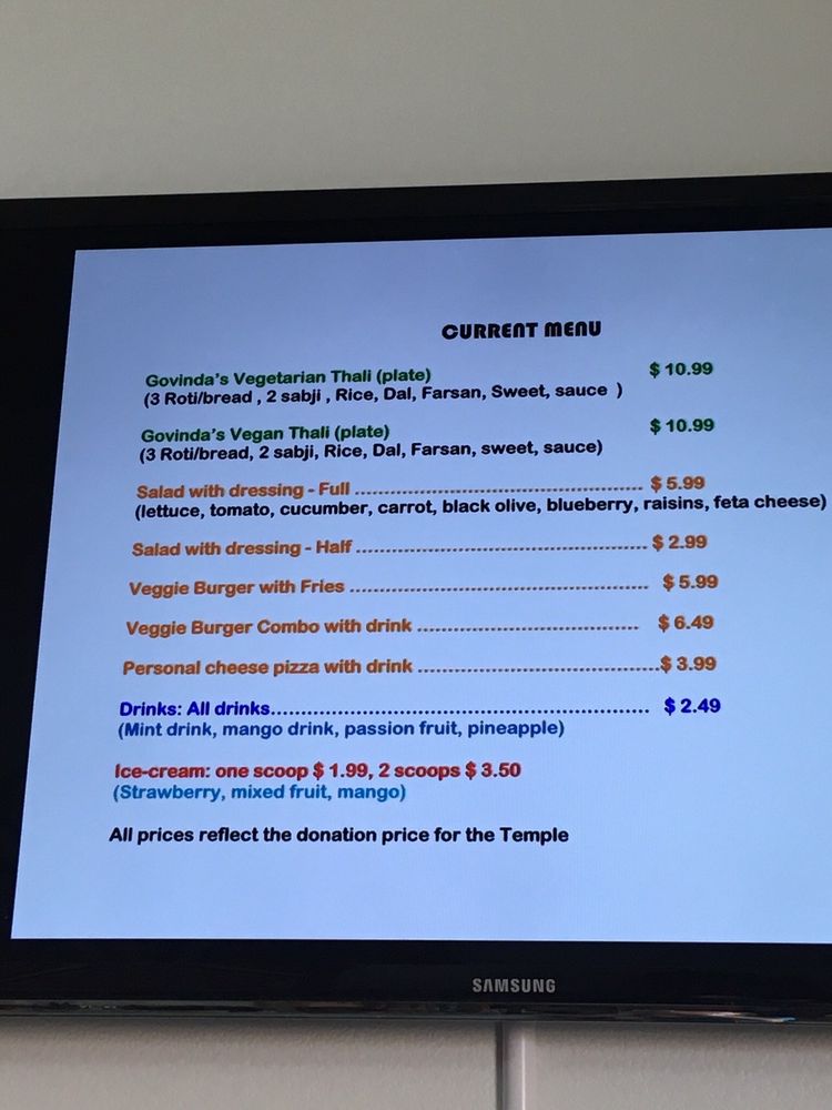 Govinda’s Vegan/Vegetarian Cafe Menu